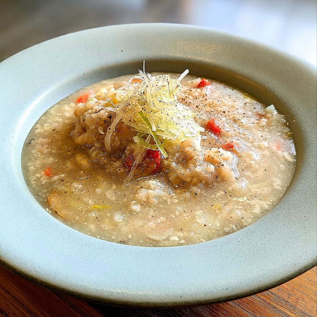 鶏の出汁と香味野菜の香りがしっかり効いていて、優しいお味ながらも食べごたえもあり身体に染み渡るスープです。