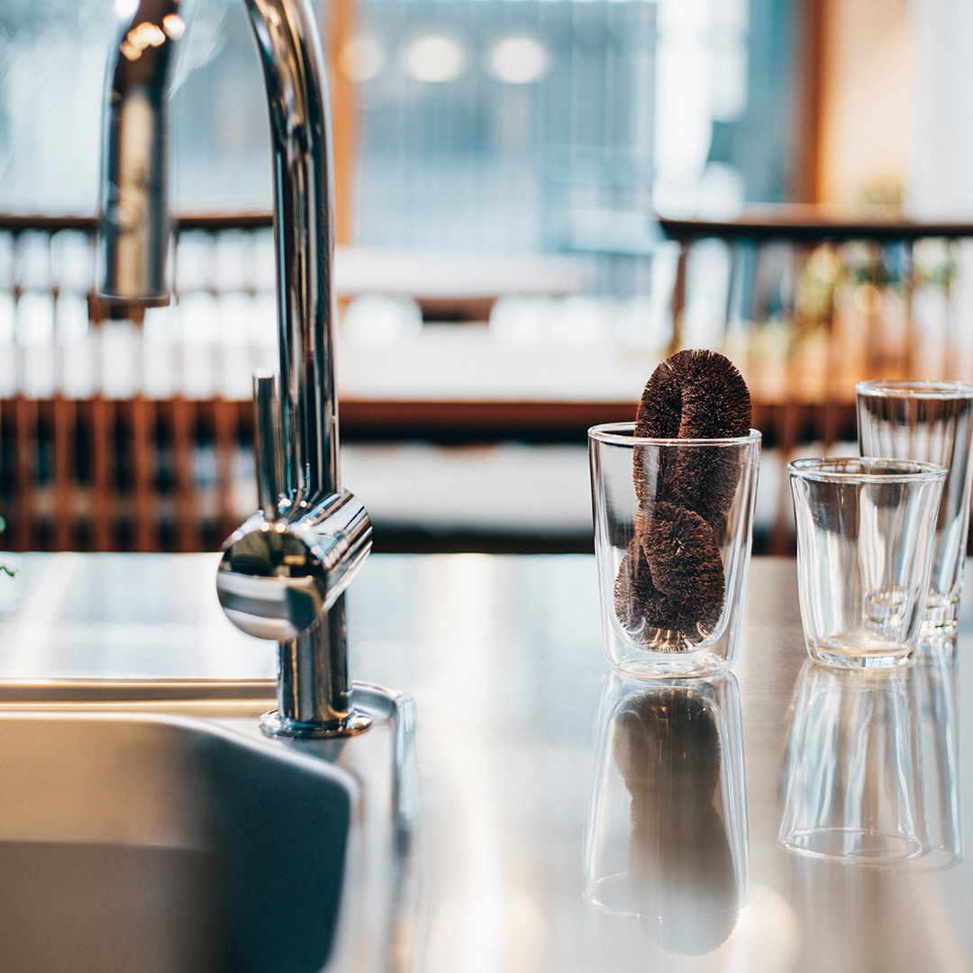 “たわし=固い・ごつごつ”というイメージを持たれる方も多いのですが、当店の「しゅろのやさしいたわし」は少し違います。棕櫚の繊維を丁寧に束ね、しっかりと巻き上げているので丈夫で長持ち。見た目以上にやわらかく、食器や鍋にも安心してお使いいただけます。使うほどに手に馴染み、やさしい風合いに変化していくのも魅力です。