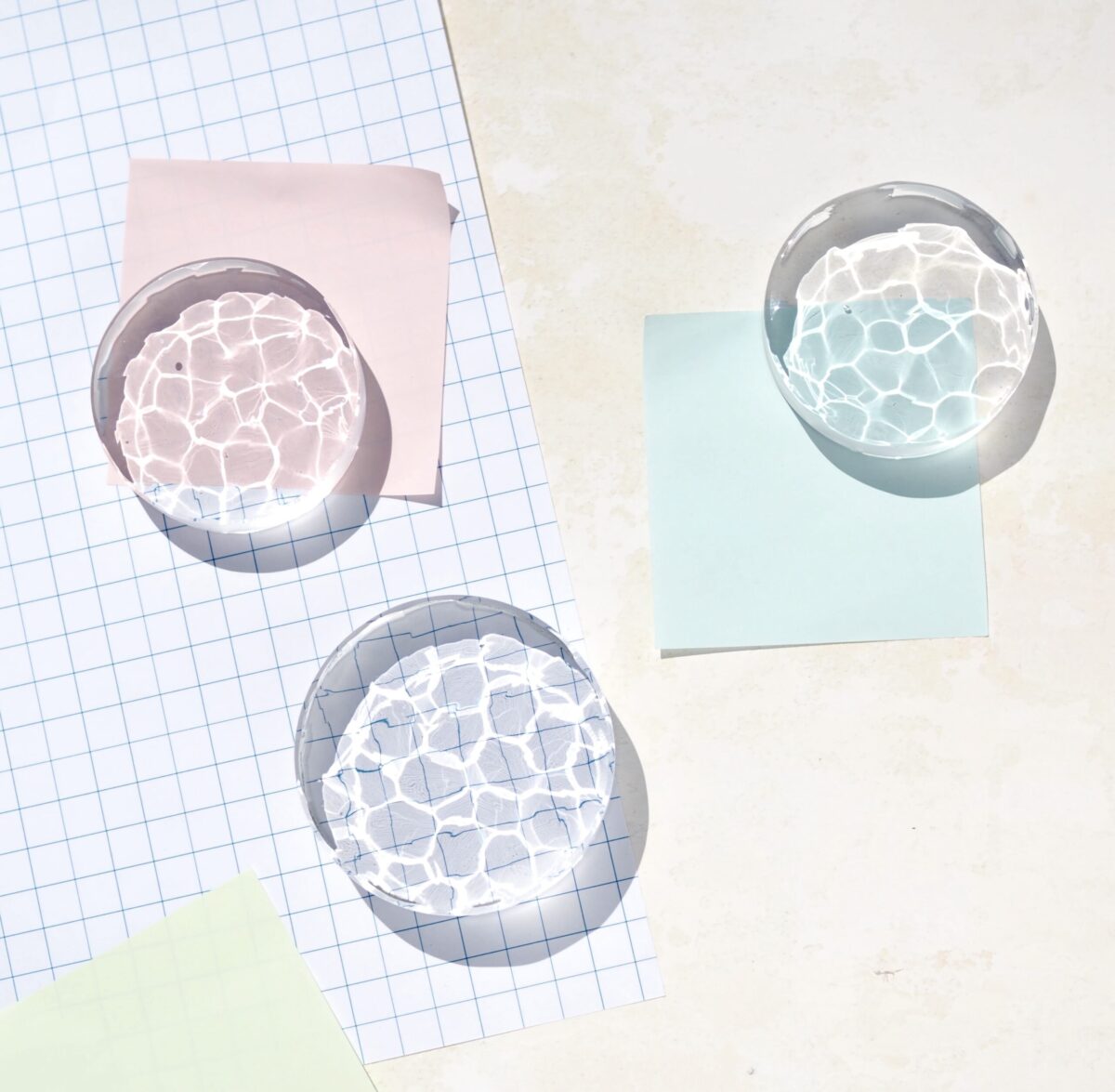 ガラス作家・丸岡勇太が手がけるpoolシリーズ。プールの水面を切り取ったような美しい表情にうっとり。