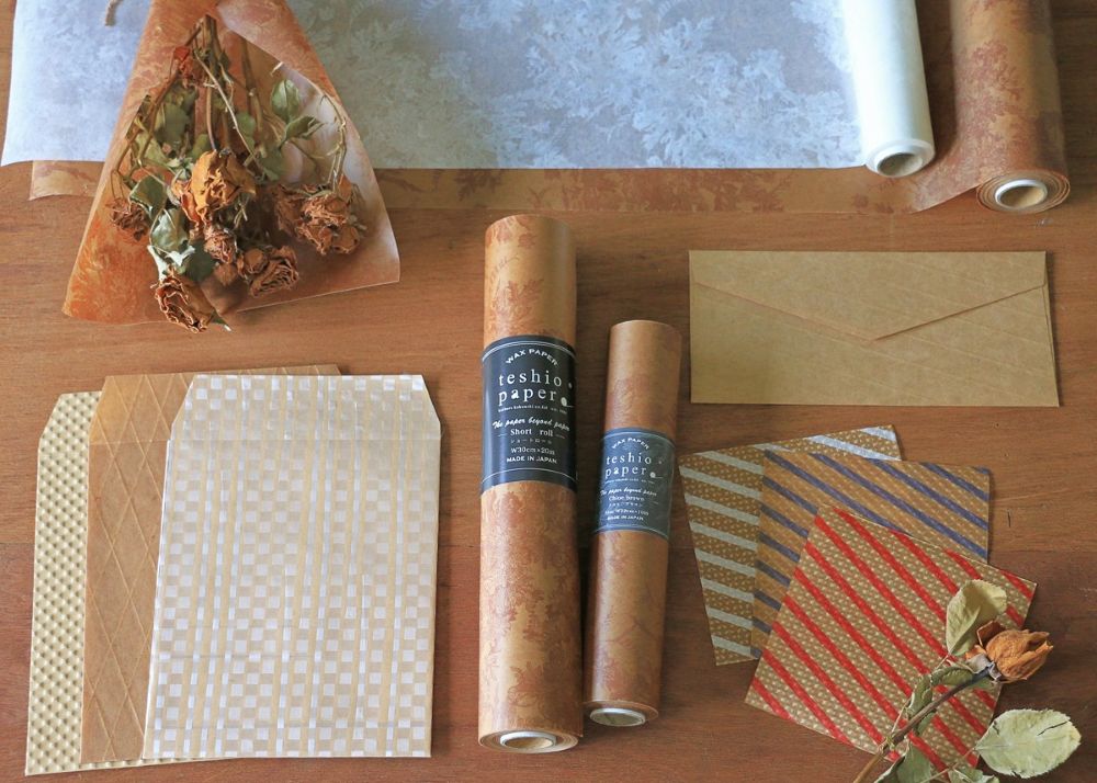 「teshio paper」は、自社の加工機でワックス加工や、凹凸加工をして機能性をもたせた紙を封筒やロール紙、インテリアキットなどにしています。 今までに触ったことや、見たことない紙の表情が楽しめる紙雑貨をたくさん販売していますので、ぜひ、会場でご覧いただければ嬉しいです!