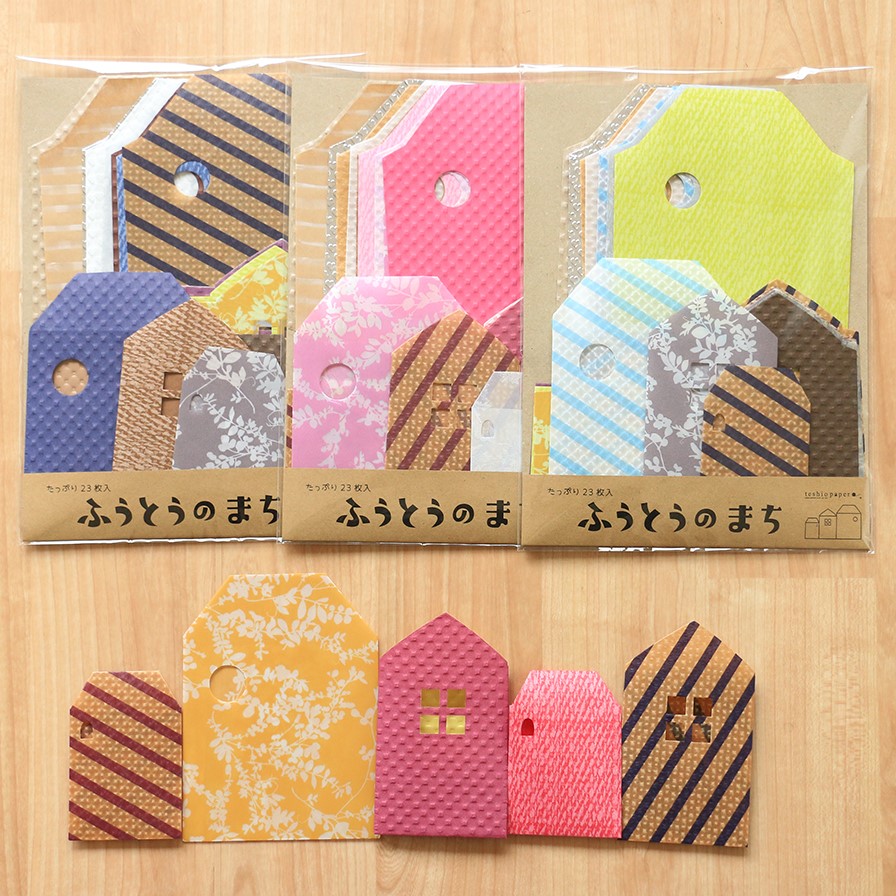 「ふうとうのまち」自慢の加工紙でつくる小さな封筒キット! 色んな紙がランダムに入っています! お気に入りのセットを見つけてね!