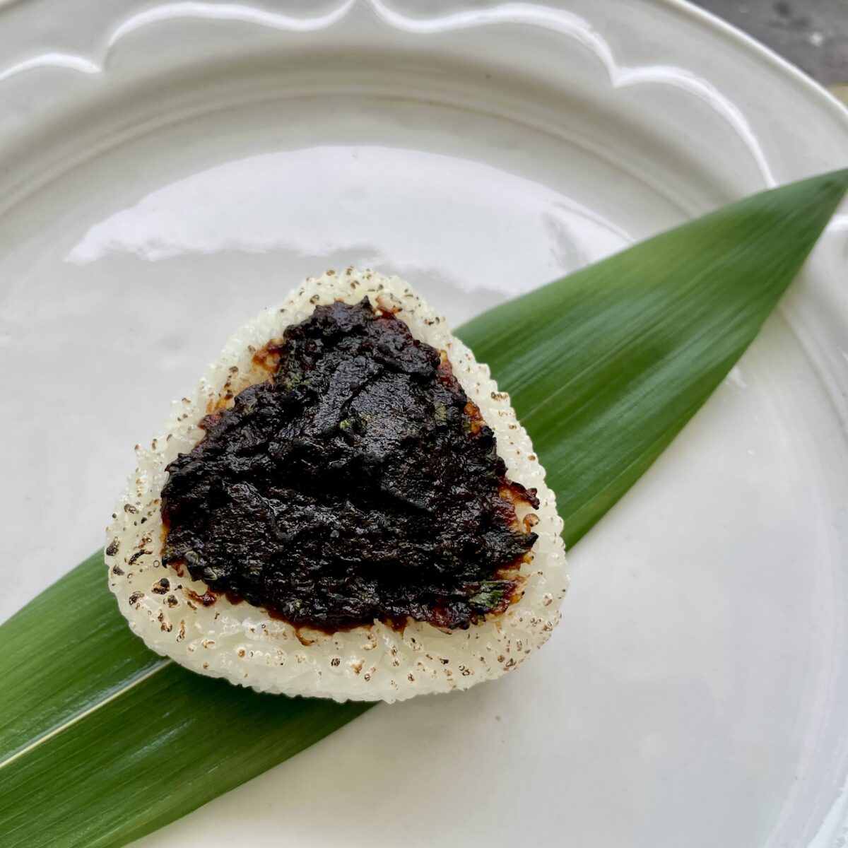 「大葉みその焼きおにぎり」木桶仕込みでの300年続く歴史ある鈴鹿市の味わい深い豆味噌と、たっぷりの大葉の香りをお楽しみください。