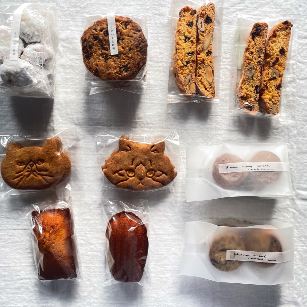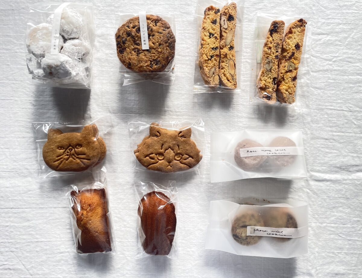 人気の猫サブレやハーブ香るクッキーなどの焼き菓子はプレゼントにもおすすめです。
