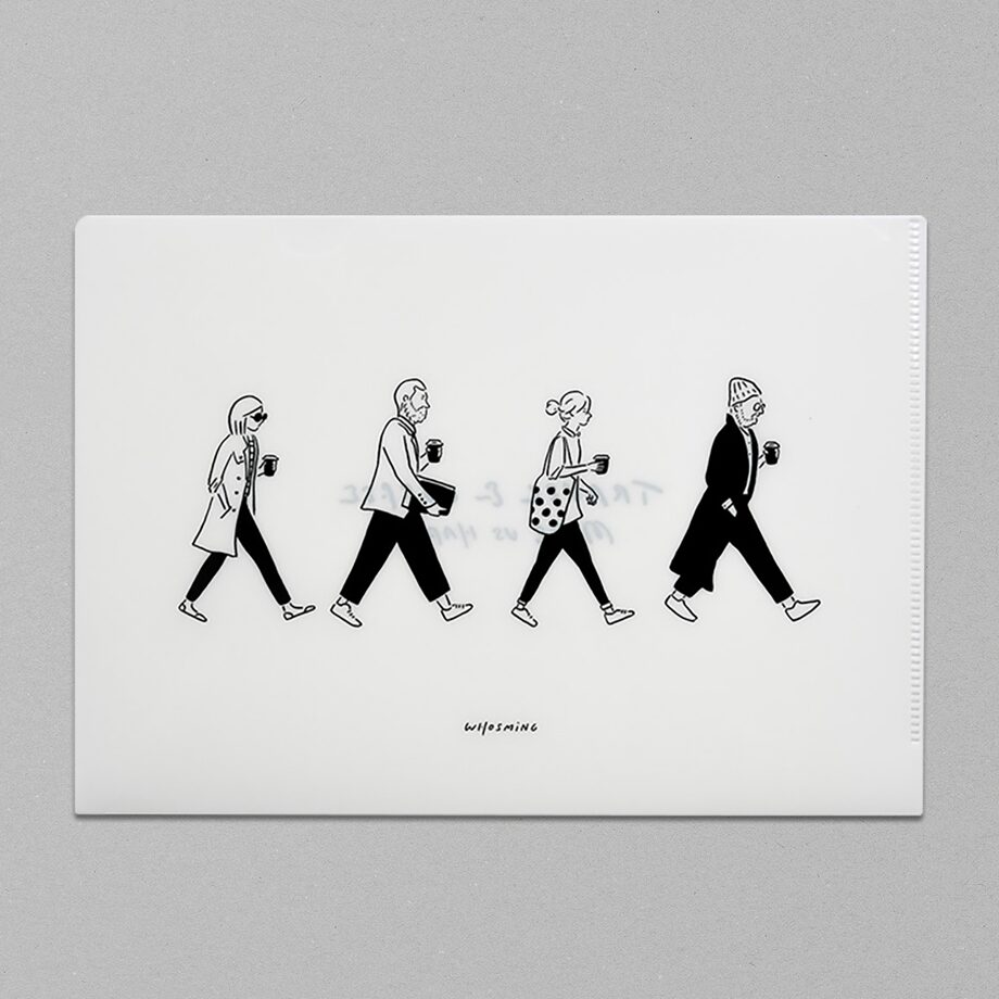 手紙社さんとコラボした「A5クリアファイル」。ビートルズの名作品「アビイ・ロード」のカバーをモチーフにしたイラストになっています。暮らしと旅行の中に欠かせないコーヒーのことを描きました。A5サイズのちょうど良い大きさは、外出時の持ち歩きにもぴったり!