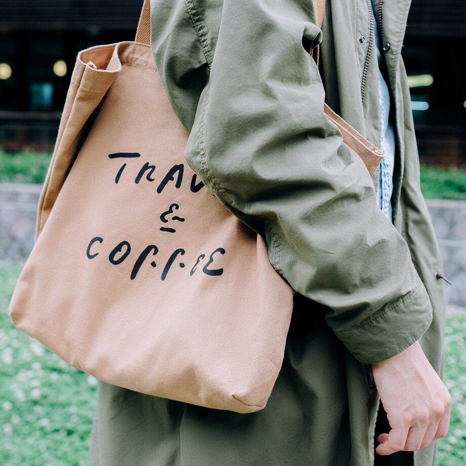 「TRAVEL & COFFEEトートバッグ」柔らかで丈夫な12オンスのキャンバスで作られ、両面印刷の異なるデザインになっています。裏側はポケット付きで小物の収納にも便利!大容量のサイズでプチ旅行やちょっとした外出にも最適です。