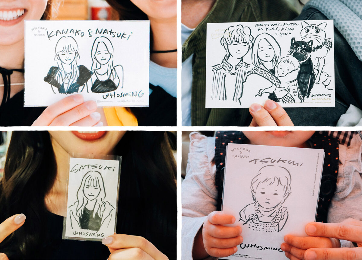WHOSMiNG(フーズミン)は台北出身のアーティストで、「旅とコーヒー」をテーマに創作活動を行っています。Instagramでは、イラストを描いたコーヒーテイクアウトカップ #mingscups が注目を集めました。デザインしたアルバム作品は、第65回グラミー賞で最優秀アルバムパッケージ部門にノミネートされています。世界各都市で活躍し、CHANEL、Pierre Hermé、The North Face など数多くのブランドとのコラボレーションを展開。さらに日本全国各地でもイベントや展示に参加しています。今回のイベントでは、来場者の似顔絵ライブドローイングに加え、WHOSMiNGオリジナルグッズの販売も行います。